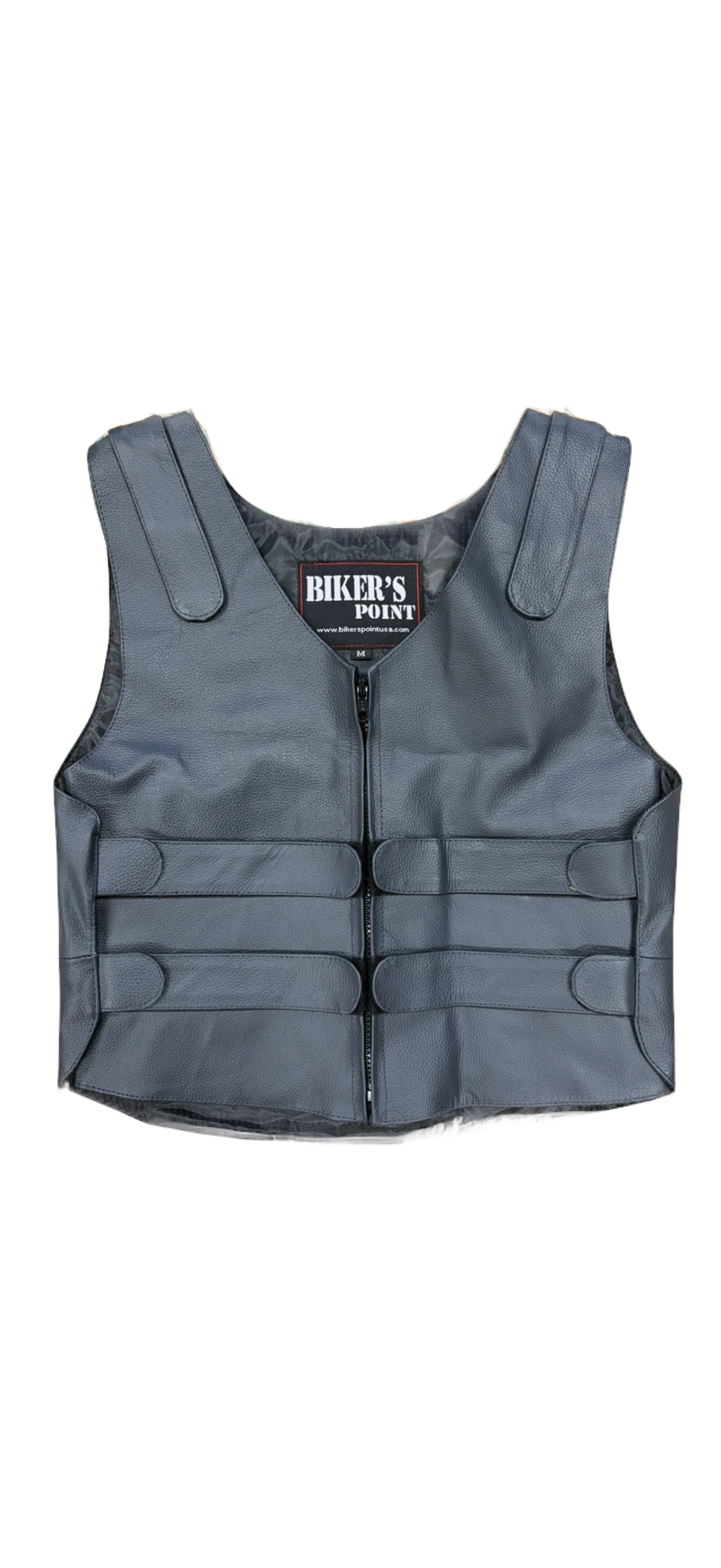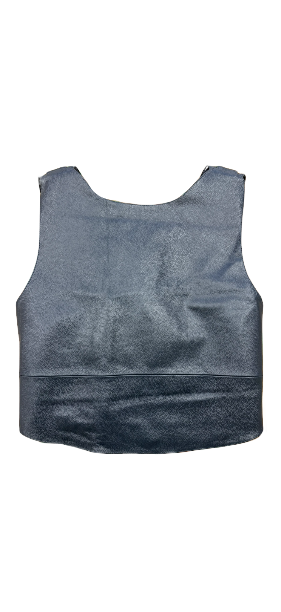 Female leather bullet style in the color charcoal. The vest runs small so we recommend that you go 1-2 sizes up from whatever female shirt size you wear unless your a small or medium. Please view the last picture so you may see the color difference between charcoal and black leather. Thank you